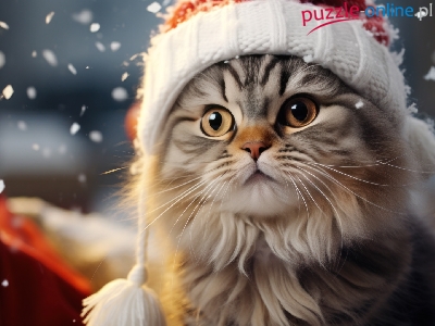 Długowłosy, Pyszczek, Kot, Śnieg, Czapka
