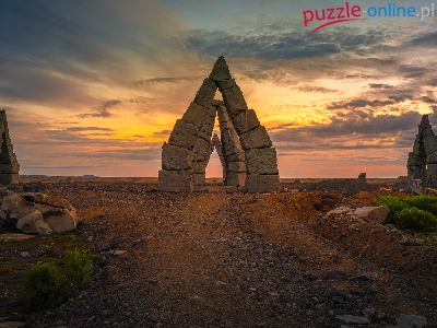 Raufarhofn, Kamienie, Zachód słońca, Łuki skalne, Islandia, Arctic Henge