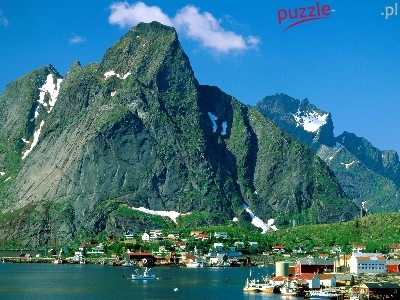 Puzzle Reine, Norwegia, Miasteczko, Góry