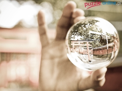 Puzzle Ręka, Przeźroczysta, Kula, Odbicie