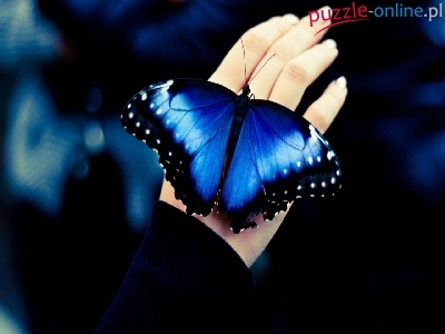 Puzzle Niebieski, Ręka, Motyl