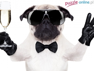Rękawice, Mops, Szampan, Pies, Okulary, Lampka