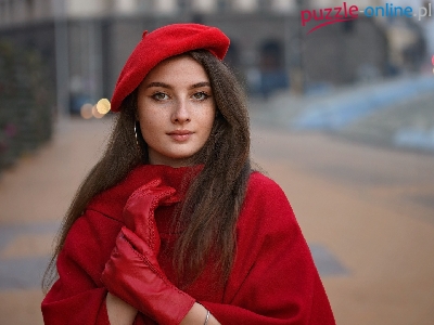 Beret, Dziewczyna, Czerwony, Rękawiczki, Płaszcz, Czerwony, Czerwone