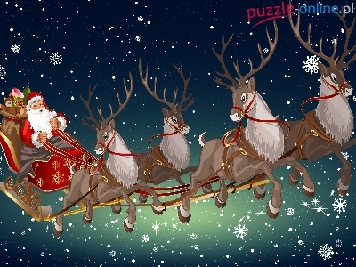 Puzzle Renifery, Mikołaj, Sanie, Gwiazdki