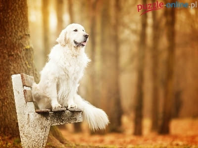 Puzzle Ławka, Pies, Golden retriever, Drzewo