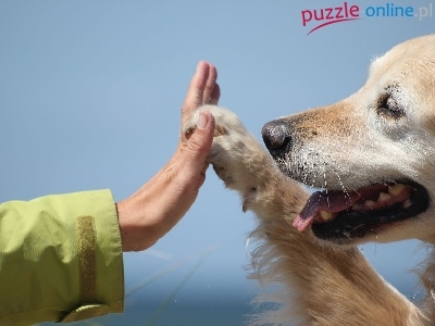 Puzzle Łapa, Piesek, Golden Retriever, Ręka