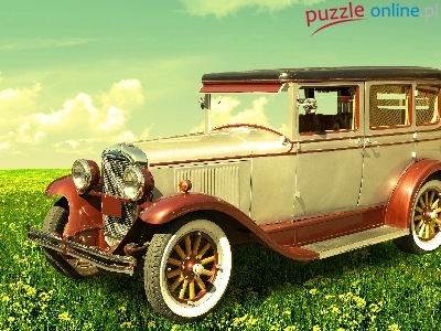 Puzzle Łąka, Samochód, Retro, Kwiaty
