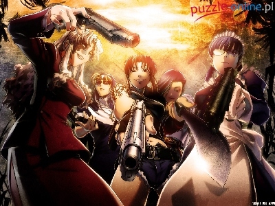 dziewczyna, Black Lagoon, twarz Revy, Black Lagoon, Papieros dziewczyna, Black Lagoon, pistolety Revy, Black Lagoon, Pistolet Black Lagoon, twarz łuski, Black Lagoon, pióra, napis Balalaika, Black Lagoon, Papieros