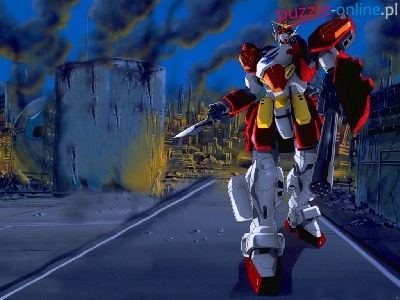 robot, ruiny, Gundam Wing, zniszczenie, miasto