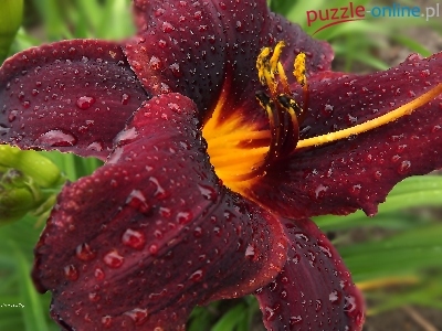 Bordowy, Środek, Deszczu, Żółty, Ciemno, Liliowiec, Krople