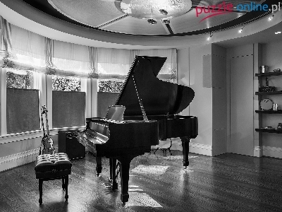 Rolety, Pufa, Regał, Fortepian, Okna, Oświetlenie