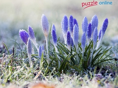 Puzzle Łąka, Krokusy, Rosa, Wiosna