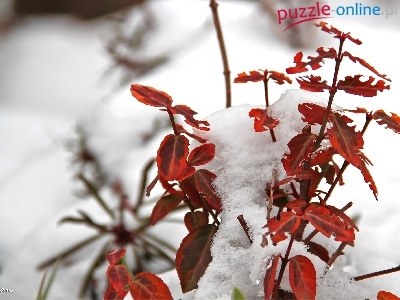 Puzzle Śnieg, Czerwona, Roślina, Zima