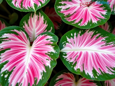 Puzzle Różowo-biało-zielone, Roślina, Kaladium, Liście