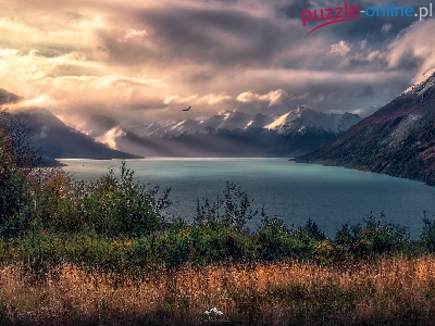 Jesień, Argentyna, Jezioro, Roślinność, Góry, Patagonia, Mgła