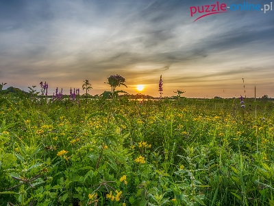 Puzzle Roślinność, Pole, Zachód słońca, Niebo