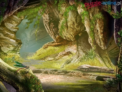 Puzzle Rośliny, Skały, Drzewa, Art
