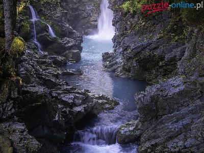 Puzzle Rzeka, Skały, Wodospad, Rośliny