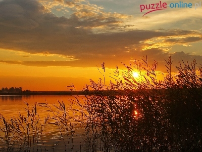 Puzzle Rośliny, Zachód, Słońca, Jezioro