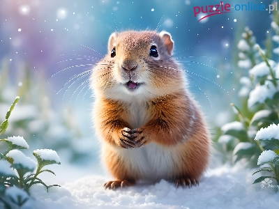 Suseł, Rośliny, Śnieg, Grafika, Zima