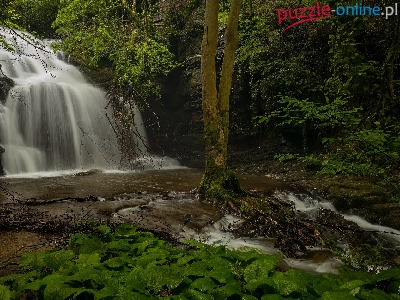 Puzzle Wodospad, Las, Rzeka, Rośliny