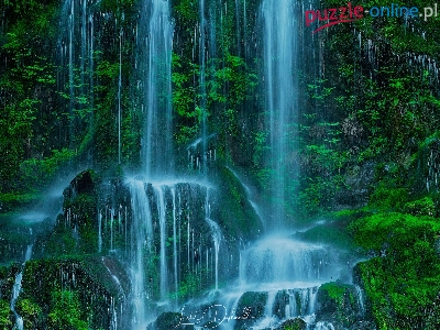 Puzzle Zielone, Wodospad, Las, Rośliny
