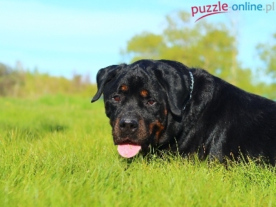 Puzzle Rottweiler, Trawa