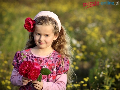 Róż, Rozmycie, Dziewczynka, Bukiecik, Zbliżenie