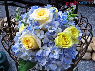 Róż, Kwiatuszki, Bukiet, Żółtych, Niebieskie