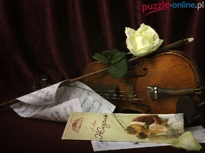 Puzzle Róża, Skrzypce, Biała, Nuty