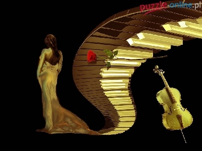 Puzzle Róża, Kobieta, Kontrabas, Klawiatura