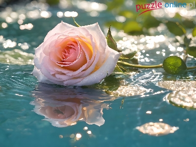 Puzzle Woda, Róża, Kwiat, Grafika AI