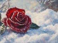 Śnieg, Czerwona, Śnieg, Róża, Szron, Listki