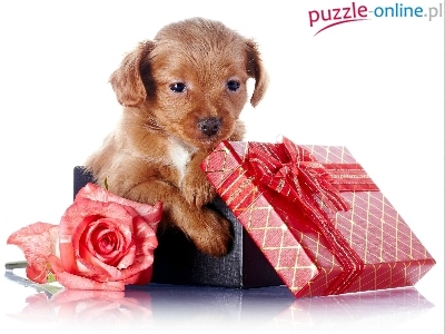 Puzzle Róża, Słodki, Szczeniaczek, Prezent