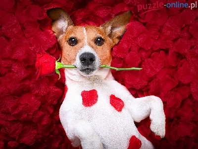 Puzzle Róża, Pies, Jack Russell terrier, Płatki
