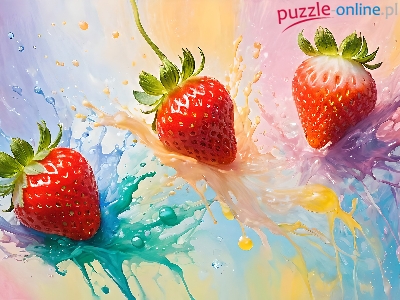 Trzy, Rozbryzgi, Truskawki, Grafika, Farby