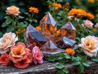 Bluszcz, Kwiaty, Kryształy, Róże, Deski, Aksamitki