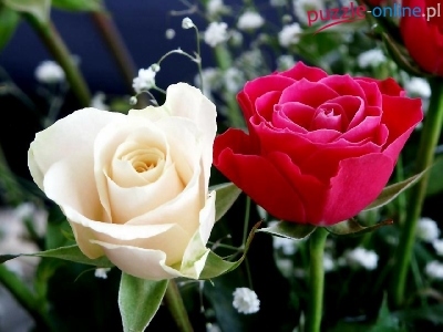 Puzzle Biała, Róże, Czerwona