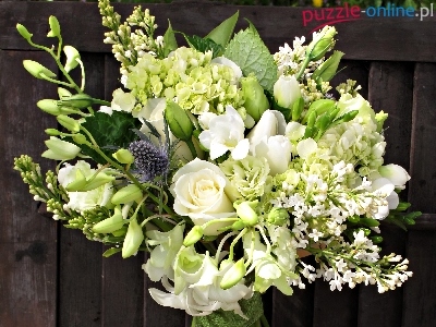 Puzzle Róże, Bukiet, Białe, Frezje