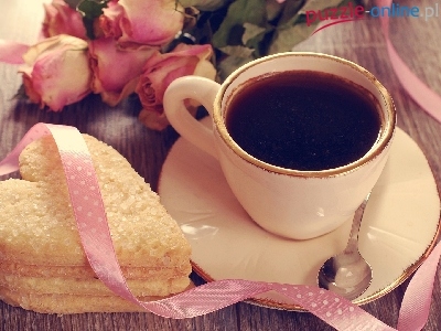Puzzle Róże, Kawa, Ciasteczka, Vintage