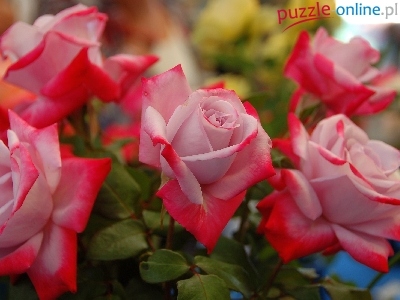 Puzzle Róże, Różowo, Czerwone, Liście