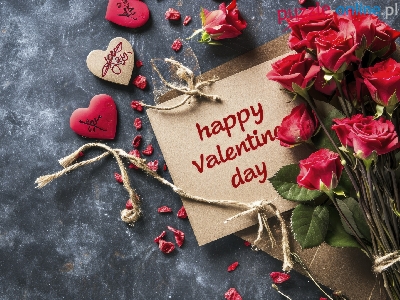 Napis, Tło, Kartka, Kwiaty, Czerwone, Serca, Walentynki, Róże
