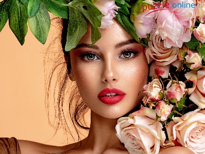 Puzzle Róże, Twarz, Kobieta
