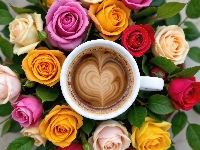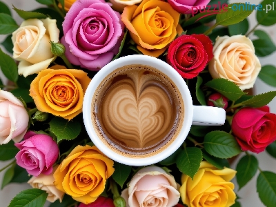 Puzzle Kolorowe, Filiżanka, Kawa, Róże