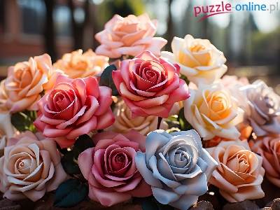 Puzzle Kremowe, Różowe, Niebieskie, Róże