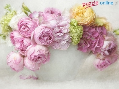 Puzzle Róże, Bukiet, Kwiaty, Wazonik
