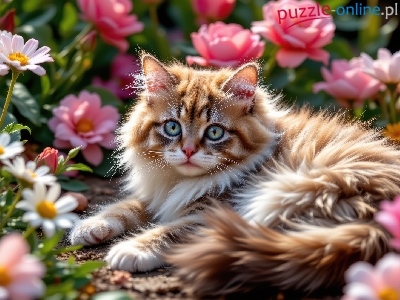 Puzzle Kwiaty, Leżący, Kot, Róże