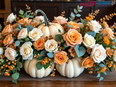 Białe, Trzy, Kwiaty, Róże, Dynie, Białe, Pomarańczowe
