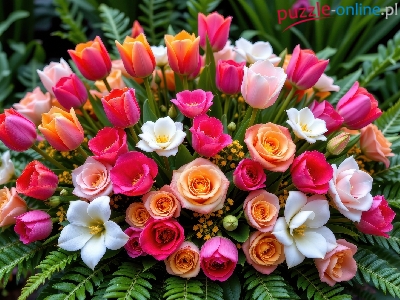 Bukiet, Róże, Kwiaty, Listki, Tulipany