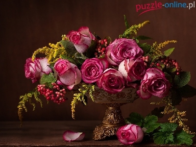 Puzzle Róże, Bukiet, Kwiaty, Nawłoć pospolita